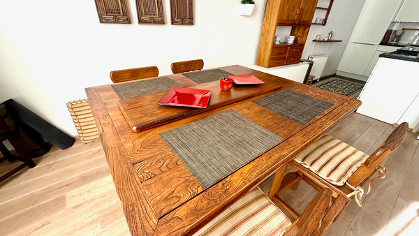 Het historische gebouw kijkt uit op een karakteristiek plein aan de straatkant, waarlangs de elegante ingang van het appartementencomplex toegankelijk is. Achter de klassieke voordeuren bevindt zich een grote hal met belletjes, intercom en brievenbussen. De deur van het appartement ligt aan de linkerkant na binnenkomst in het complex. Via de voordeur komt u in een grote gang die leidt naar de woonkamer. De woonkamer strekt zich uit over de grootste breedte van het appartement en heeft hoge ramen die uitzicht bieden over de straatzijde, waardoor de ruimte licht en open is. De eetruimte heeft een verhoogde tafel met een kenmerkend houten blad en de semi-open keuken bevindt zich naast de eettafel.