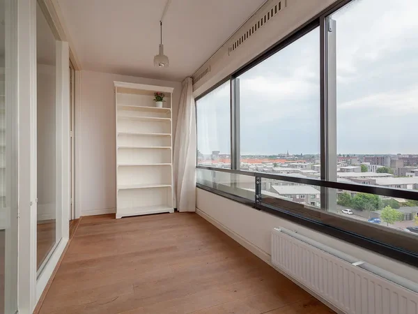 In een representatief complex gelegen aan de rand van een moderne woonwijk, bevindt zich dit riant, gestoffeerde 3-kamer appartement op de 6e verdieping. De indeling omvat een entree met ruime hal, een living met een aansluitende loggia/serre voorzien van schuiframen, en een open keuken met L-inrichting en diverse inbouwapparatuur zoals een oven, koelkast met vriesgedeelte, inductiekookplaat en vaatwasser. Het appartement beschikt verder over een master-bedroom met kastenwand, een slaap/logeerkamer met kastenwand en een nette badkamer met douche, wastafel en toilet. Er is een berging in de onderbouw. Het appartement is centraal gelegen nabij voorzieningen, horeca en openbaar vervoer, met gratis openbaar parkeren en snelle verbindingen naar het centrum van Den Haag.