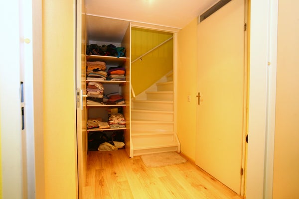 De beneden verdieping kunt u via een houtentrap in de eetkamer bereiken. Hier bevindt zich de badkamer met zowel een badkuip een douche gelegenheid en een wastafel. Een ruime kledingkast bevindt zich direct naast de badkamer.De 2e slaapkamer welke nu dienst doet als linnenkamer is ruim en bevindt zich aan de achterzijde en biedt eveneens toegang tot het terras en de tuin.