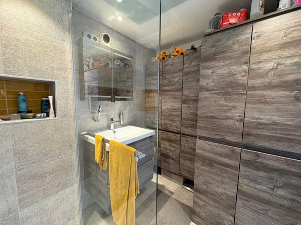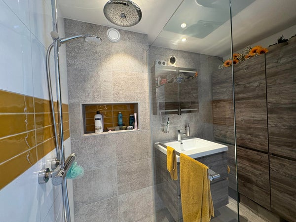 De moderne badkamer heeft alles wat u nodig heeft en is modern en stijlvol ingericht.