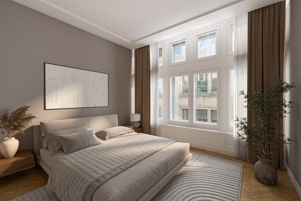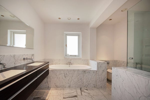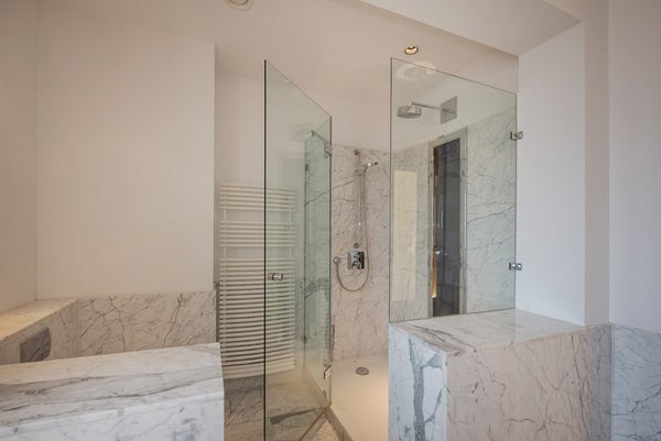 Het appartement beschikt over twee ruime slaapkamers, waarvan één met een inloopkast. De luxe badkamer is voorzien van een inloopdouche met infrarood sauna, jacuzzi bad, dubbele wastafel en een tweede toilet.