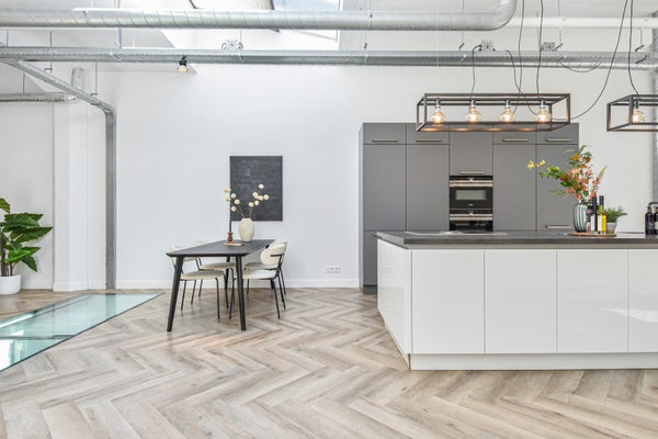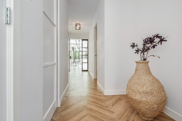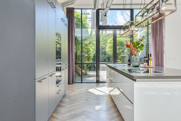 De woning is recent volledig gerenoveerd met oog voor detail en voorzien van hoogwaardige materialen, uitstekende isolatie (energielabel A+) en vloerverwarming door de gehele woning. Via de eigen entree bereikt u een stijlvolle hal met een modern toilet. Een stalen taatsdeur geeft toegang tot de royale woonkamer met hoge plafonds, strakke wanden en grote raampartijen waardoor de ruimte heerlijk licht is. De open keuken met groot kookeiland vormt het hart van de woning en is uitgerust met hoogwaardige inbouwapparatuur, waaronder een vaatwasser, oven, koelkast, kookplaat en afzuigkap. Vanuit de woonkamer geven openslaande deuren toegang tot de fraai aangelegde tuin, waar u in alle rust kunt genieten van de zon.