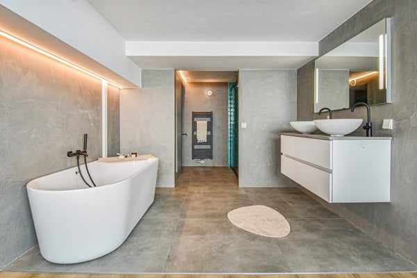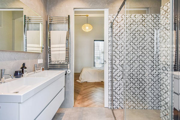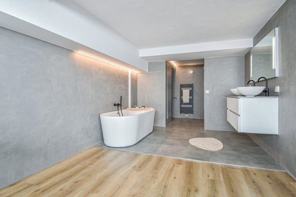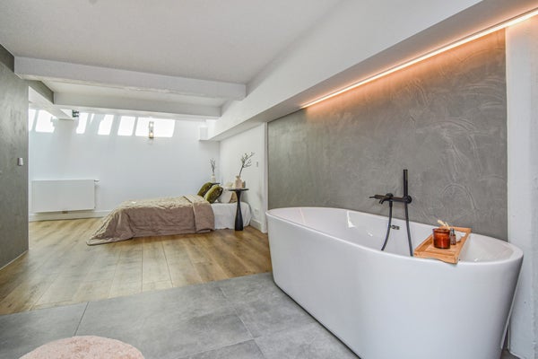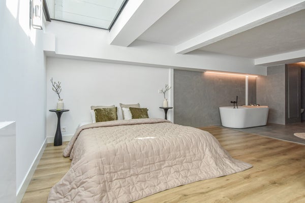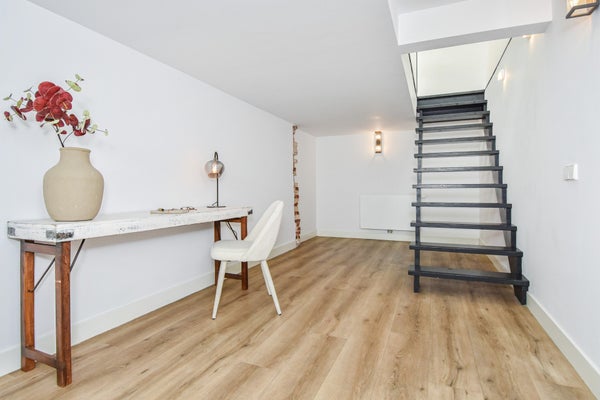 Aan de voorzijde van de woning bevinden zich twee comfortabele slaapkamers, waarvan één uitstekend te gebruiken is als werkkamer. De eerste badkamer is modern afgewerkt en voorzien van een ruime inloopdouche, dubbel wastafelmeubel en designradiator. Via een vaste trap bereikt u het luxe afgewerkte souterrain met een derde, royale slaapkamer met daglichttoetreding en een tweede badkamer in spa-stijl, voorzien van een ligbad, inloopdouche en dubbel wastafelmeubel. Deze verdieping is ideaal als master bedroom of gastenverblijf.