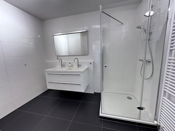 De badkamer is voorzien van inloopdouche en dubbele wastafel. Separate toilet toegankelijk via de gang. Bij het appartement behoort een parkeerplaats in de afgesloten parkeergarage, deze is met de lift te bereiken. Tevens behoort er een kleine berging tot het appartement.