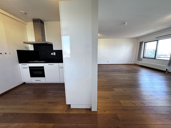 Entree woning, hal die toegang geeft tot alle vertrekken. Zeer ruime woonkamer met open keuken voorzien van inbouw apparatuur; koelkast, vriezer, vaatwasser, kookplaat, afzuiger en oven. Aangezien de woning gelegen is op een hoek zijn er veel ramen waardoor de woning extra licht is. Er zijn 2 ruime slaapkamers met zeezicht. Het zonnige balkon wat te betreden is via de woonkamer heeft zee en havenzicht.