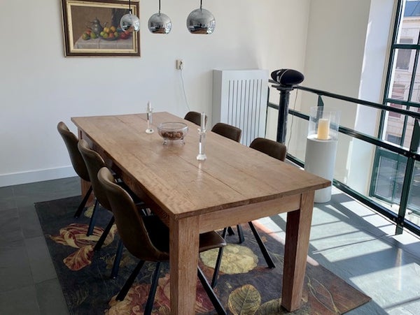 ingang; mooie en lichte woonkamer met prachtige ramen met uitzicht op het stadscentrum (ca. 5x4,75); trap naar een hoger niveau met eetkamer (ca. 3,50x2,40) en open compleet uitgeruste luxe keuken (ca. 5,30x2,10); hal, toilet met wastafel, wasruimte met wasmachine/wasdroger, inbouwopslag/kast, moderne badkamer met bad/douche, handdoekverwarmers en wastafel, prachtige master bedroom (ca. 4,00x 3m) en 2e slaapkamer/studie (ca. 4,00x3,00) beide met toegang tot groot en zonnig terras (ongeveer 44 m2)!