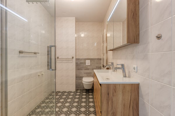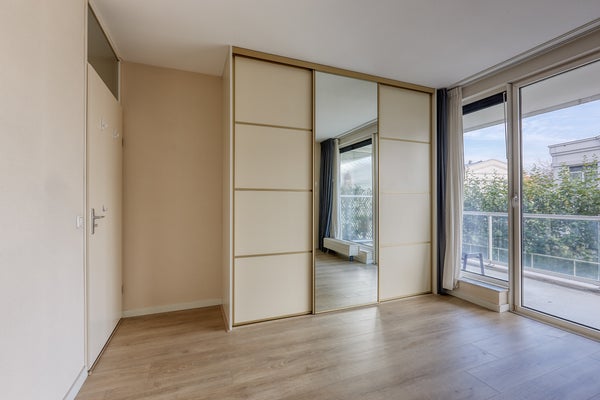 Het appartement beschikt over twee riante slaapkamers. Beide slaapkamers bieden toegang tot het heerlijk zonnige balkon van ca. 13 m², gelegen op het zuiden. De luxe badkamer is uitgerust met een douche, dubbele wastafel met meubel, zwevend toilet en designradiator. Er is tevens een separaat gastentoilet aanwezig.