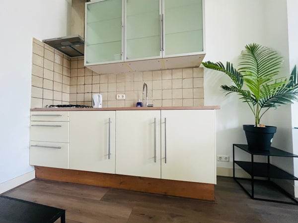 INDELING: Entree op straatniveau, u betreedt de gemeenschappelijke ruimte. U neemt de trap naar de 1e etage waar het appartement zich aan de voorzijde bevindt. Voordeur, entree appartement in de woonkamer van circa. 24 m². Openkeuken welke is voorzien van een kookplaat, koelkast en afzuigkap. Slaapkamer van circa. 6 m². Badkamer welke is voorzien van een douche, wastafel en toilet.