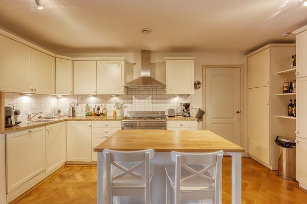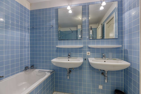 De moderne open keuken is uitgevoerd in een tijdloos design en voorzien van alle benodigde inbouwapparatuur zoals een gaskookplaat met afzuigkap, grote oven, combi-magnetron, vaatwasser, koelkast met vriezer en veel kastruimte. De open opstelling zorgt voor een gezellige verbinding tussen koken en wonen. De woning beschikt over twee badkamers. De hoofdbadkamer is uitgerust met een ligbad, inloopdouche, dubbele wastafel en toilet. De tweede badkamer beschikt over een douche, wastafel en toilet ideaal voor gasten of als privébadkamer bij de tweede slaapkamer. Verder is er in de hal een separaat toilet met fonteintje en een aparte wasruimte met wasmachine en droger. In de onderbouw bevindt zich een privé berging, welke gebruikt kan worden, maar alleen voor het stallen van fietsen.