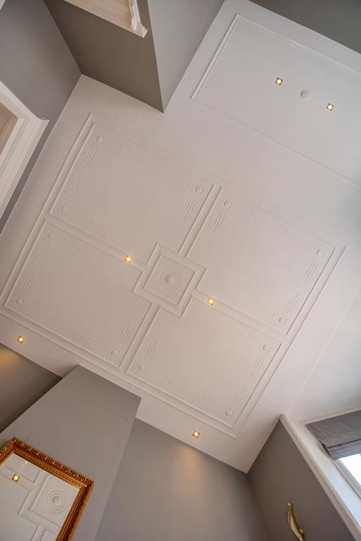 Stap binnen via het representatieve entree met klassiek betegelde wanden en een goed beveiligde voordeur met glas-in-lood. Direct wordt u ondergedompeld in de sfeer van vervlogen tijden, gecombineerd met moderne afwerking. De woning beschikt over een indrukwekkende gevel, prachtige schuifseparaties met glas-in-lood, sierlijke schouwen en een karakteristieke erker met ingebouwde zitbank – de ideale plek om met een kop koffie het stadsleven te aanschouwen.
