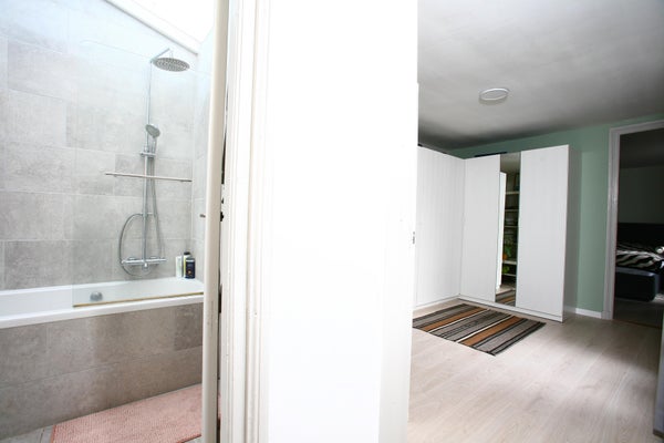 De woonkamer is ruim en beschikt over een voormalige en-suite indeling, wat zorgt voor een mooie lichtinval en flexibiliteit in het gebruik van de ruimtes. Dit geeft het appartement een klassieke sfeer met een eigentijdse uitstraling.
