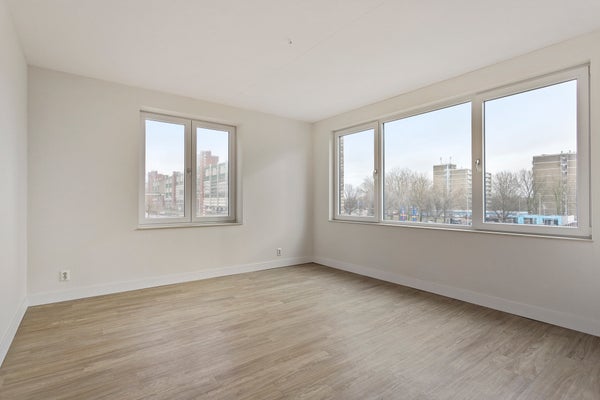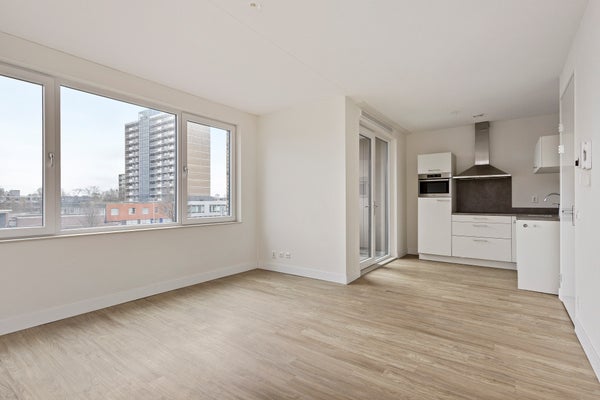 Het appartement heeft twee slaapkamers, welke beide een oppervlakte hebben van circa 12 vierkante meter. De moderne badkamer is voorzien van een douche, wastafel met wastafelmeubel en heeft een toilet. Daarnaast heeft de inpandige berging een wasmachine- en drogeraansluiting. Het appartement heeft een licht woonkamer door de grote raampartijen, welke beschikt over een moderne keuken welke uitgerust is met alle benodigde inbouwapparatuur. Vanuit de woonkamer is de loggia te bereiken.