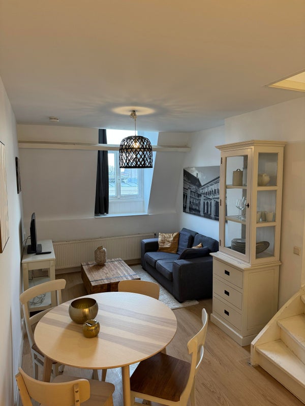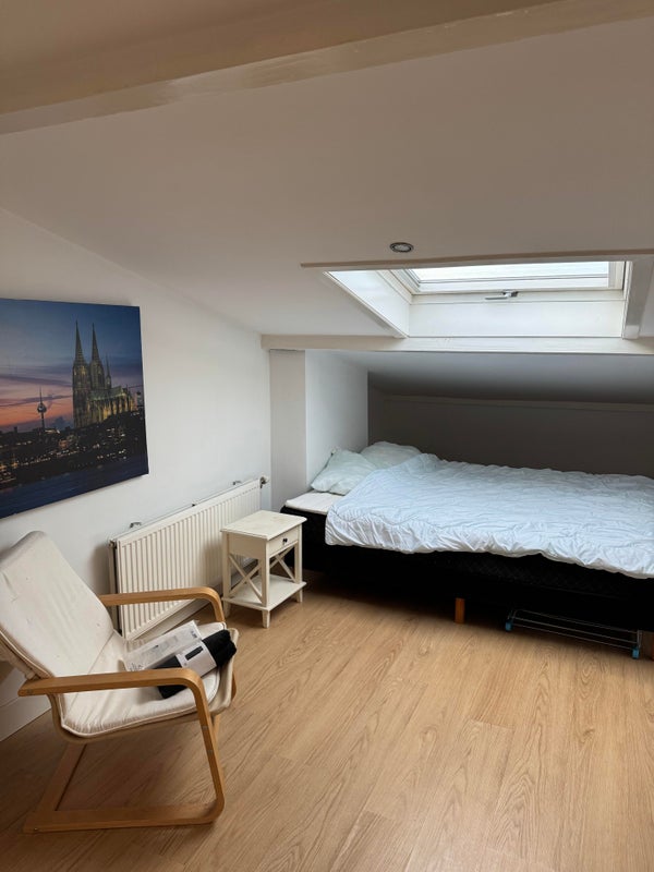 Dit appartement is gelegen op de derde verdieping. Het appartement heeft een grote woonkamer met een open keuken. Er is een aparte badkamer aanwezig, voorzien van een wastafel, douche en toilet. Boven vindt u de slaapkamer. De huurprijs is €1495,- inclusief gas, water, elektriciteit, Tv en internet.