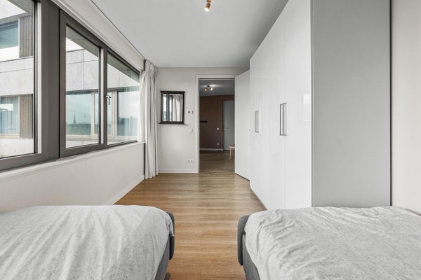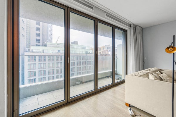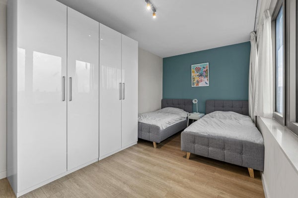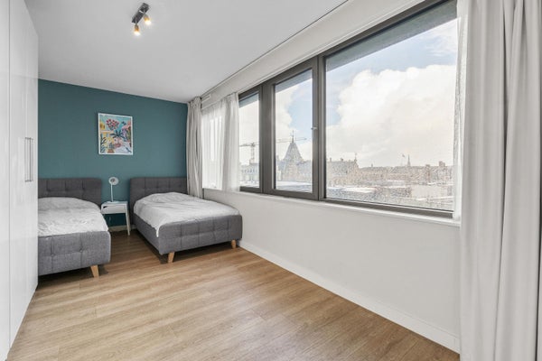 Het appartement (133 m²) verkeert in uitstekende staat van onderhoud, is volledig geïsoleerd en voorzien van dubbel glas. Dankzij de ligging en isolatie ervaart u binnen volledige rust, ondanks de centrale locatie.