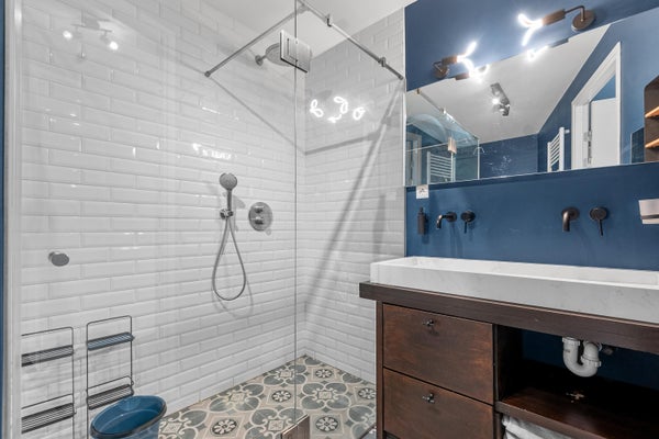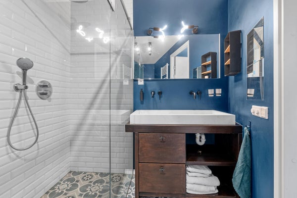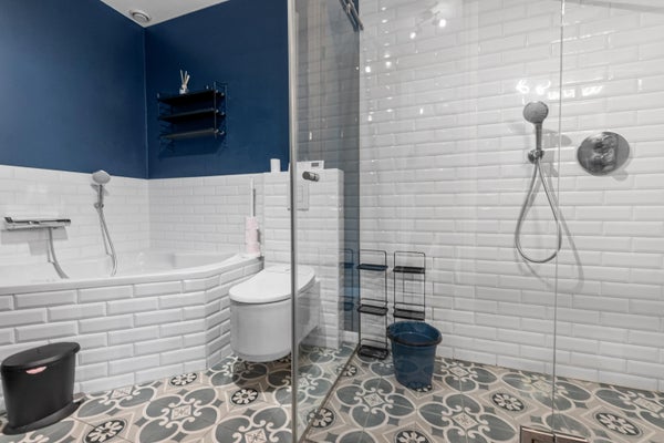 De luxe badkamer beschikt over een dubbele wastafel met spiegelmeubel, inloopdouche, ligbad, hangtoilet met douchefunctie en handdoekradiator. Daarnaast is er een separaat gastentoilet. Twee ruime bergingen in de hal bieden volop opbergruimte.