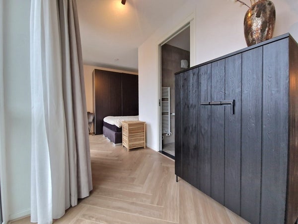 Het slaapgedeelte biedt voldoende ruimte voor een 2-persoonsbed en een grote kledingkast.