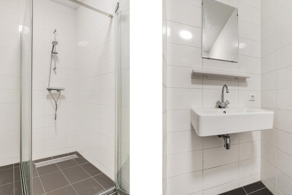 - Badkamer met douche en wastafel.