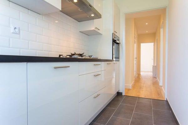 Moderne luxe keuken (ca. 3.45 x 1.64) voorzien van modern keukenblok met onder- en bovenkasten en afzuigkap, 4-pits gaskookplaat, oven, vaatwasser, koel- vriescombinatie en deur naar het balkon. Fraaie luxe badkamer (ca. 2.76 x 1.27) voorzien van douche, badmeubel met vaste wastafel en spiegel, toilet en designradiator. Grote achterslaapkamer (ca. 5.58 x 3.26/2.77) met openslaande deuren naar het balkon. Ruime voorslaapkamer (ca. 3.33 x 2.56), Achterzijslaapkamer (ca. 3.77 x 2.09). Balkon over de gehele breedte van de woning (ca. 7.00 x 0.97) met balkonkast.