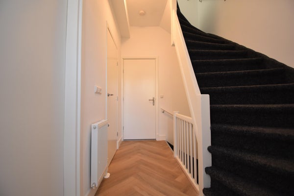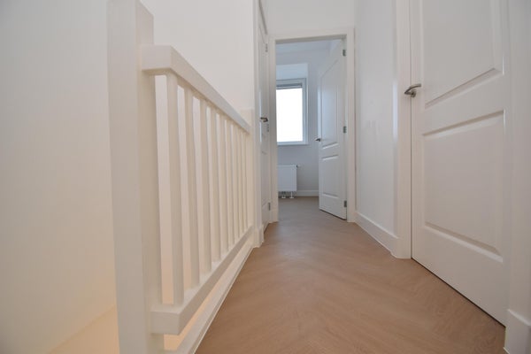 Achter de voordeur is de trap naar de eerste verdieping waar u twee slaapkamers en een net toilet treft. De trap brengt u verder naar de tweede woonlaag, waar u de zeer ruime woonkamer, keuken en nieuwe badkamer vindt.