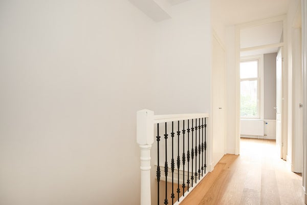 2e Verdieping: 3 slaapkamers, badkamer voorzien van bad, separate douche en een dubbele wastafel. De slaapkamer aan de achterkant heeft toegang tot het balkon. Tevens bevindt zich op deze woonlaag een kastruimte waar aansluiting is voor een wasmachine en een toilet met wastafel.