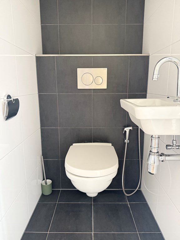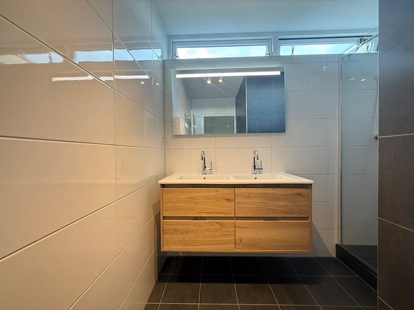 Tweede badkamer met inloopdouche en wastafel. Apart tweede toilet.