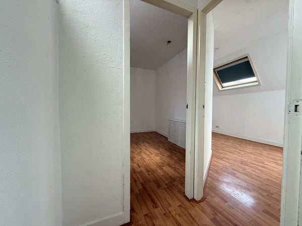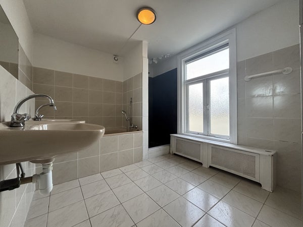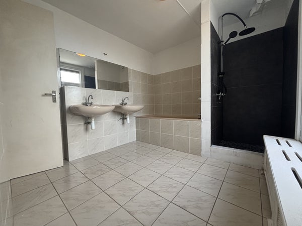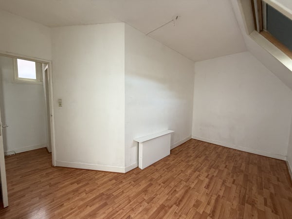 De badkamer bestaat uit een dubbele wastafel, een ligbad, en een douchecabine. Ook is hier de wasmachine aansluiting aangelegd. Centraal heeft u de grootste slaapkamer van maarliefst 20 m². Er is nog een kamer aan de voorzijde, welke een laag plafond heeft (onder de nok van het dak).