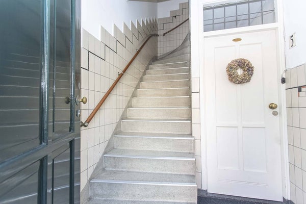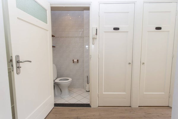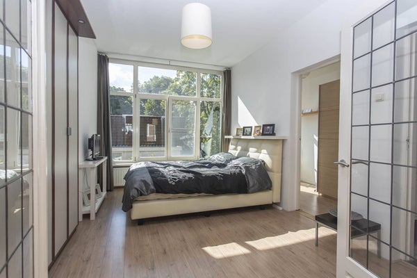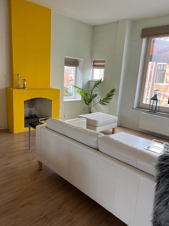 Gedeelde ingang vanaf de straat met trap naar de 1e verdieping. Deur naar een kleine hal met directe toegang tot de ruime woonkamer. Het appartement bevindt zich op de hoek, wat betekent dat er veel ramen en licht in huis zijn. Openslaande deuren naar de ruime slaapkamer met comfortabel tweepersoonsbed. Vanuit de woonkamer heb je ook toegang tot de keuken met apparaten zoals een vaatwasser, vriezer/koelkast, gasfornuis, oven en magnetron. Veel planken en opbergruimte in de keuken. Vanuit de keuken deuren naar het balkon. Badkamer met inloopdouche, wastafel en handdoekradiator. Separaat toilet. Een tweede studeer- of kledingkamer is naast de woonkamer te vinden. Wasmachine. Het appartement is centraal verwarmd en heeft laminaatvloeren.