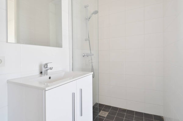 De open keuken is uiterst modern en beschikt over een groot aanrechtblad, gaskookplaat en een fraaie afzuiger. Daarnaast kunt u gebruik maken van veel kastjes en lades, een middelgrote koelkast met vriesvakje, vaatwasser en een combi magnetron/oven! De badkamer is voorzien van een zwevend toilet, een wastafel met spiegel en een inloopdouche. In de hal is er een kleine berging waar uw eigen cv-ketel is geïnstalleerd en beschikbare opbergruimte!