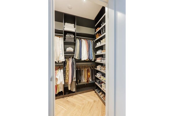 De gang biedt verder toegang tot het separaat toilet met fonteintje, een aparte inloop kledingkast en een voorraadkast met achtergelegen was/voorraadruimte met was/droogcombinatie.