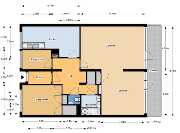 Indeling: afgesloten luxe entree. Lift naar de 3e etage. Entree appartement. Ruime hal. Woonkamer met aparte keuken. Eet/slaapkamer aan de achterzijde. Groot balkon met het grootste gedeelte van de dag zon. Badkamer met douche en dubbele wastafel. Apart toilet. 2 slaapkamers aan de voorzijde van de woning.