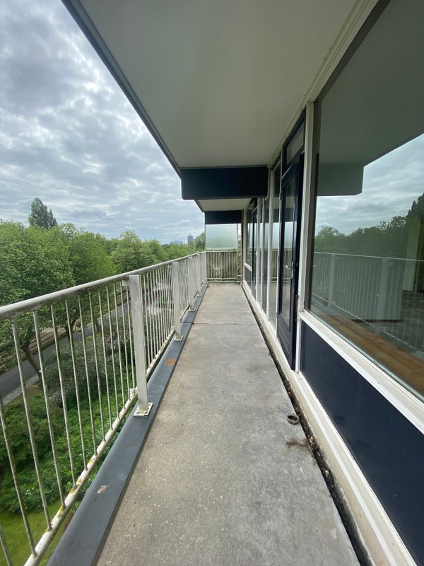 Op de 6e etage gelegen (hoekwoning), licht 3-kamer appartement (103m²) met zonnig, ruim balkon en eigen berging. Parkeren kunt u eenvoudig aan de achterkant op eigen terrein.