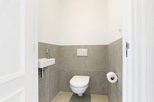 Indeling: De elegante hoofdingang maakt direct indruk! Via een ruime overloop met marmeren vloer en een brede trap bereikt u de eerste verdieping waar het appartement zich bevindt. Bij binnenkomst komt u in de lichte woonkamer met grote ramen en een open, volledig ingerichte keuken. In de hal vindt u een bergruimte met wasmachineaansluiting, een apart toilet, de ruime badkamer en twee goed bemeten slaapkamers.