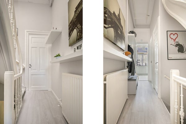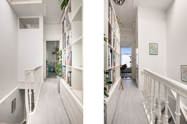 Trappen naar de tweede verdieping, waar je op de overloop terechtkomt. De master bedroom heeft toegang tot een balkon en heeft een aangrenzende badkamer. De nette badkamer is uitgerust met een ligbad, een aparte douche en een wastafel met spiegel. Een tweede slaapkamer bevindt zich aan de achterzijde van het pand, terwijl twee andere slaapkamers aan de voorkant zijn gelegen.