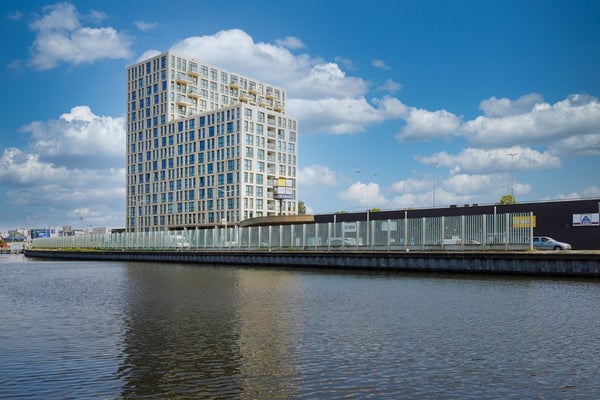 GO 070 telt 16 verdiepingen. Het imposante gebouw maakt een stoer statement aan de kade. Binnen leven met de stad in het zicht.