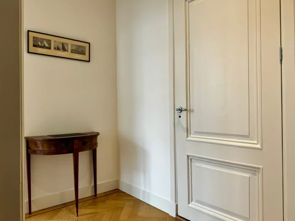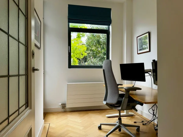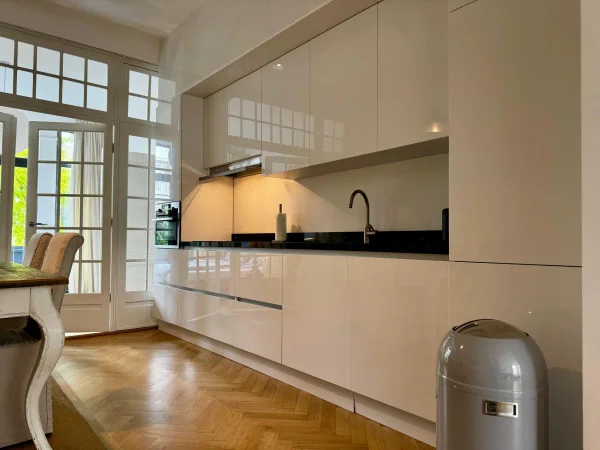 Dit compleet ingerichte driekamerappartement is gelegen op een fijne locatie en biedt een fraaie entree met brievenbussen en een bellentableau. Via de trap bereik je de eerste verdieping, waar je de inpandige entree van het appartement vindt, compleet met een tussenhal en garderobe. De woonkamer heeft een mooi uitzicht op de Groot Hertoginnelaan en is voorzien van glas-in-loodramen in dubbel glas. De luxe keuken, met originele en-suitekasten, beschikt over alle benodigde inbouwapparatuur. Achter is een slaapkamer met kastruimte en toegang tot het balkon. Er is een tweede slaapkamer, in gebruik als werkkamer met een verstelbaar bureau en ook toegang tot het balkon. De ruime badkamer is uitgerust met een ligbad, inloopdouche, wastafel en vrijhangend toilet. In de kelder is een individuele bergruimte per appartement aanwezig.