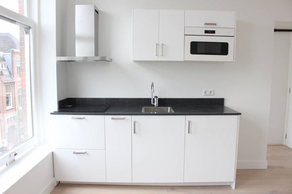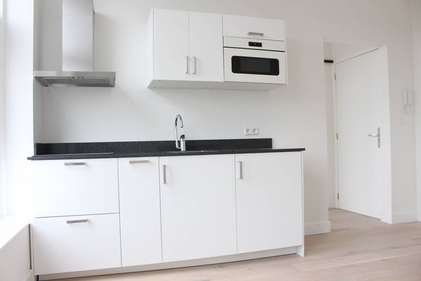 Via de gezamenlijk entree op straatniveau betreedt u met de privévoordeur het appartement op de tweede etage. U komt binnen in een knusse hal, welke toegang biedt tot de ruime en lichte woonkamer met open keuken. De open keuken is voorzien van een koelkast, vier-pits inductieplaat, afzuigkap en magnetron. De woonkamer beschikt over grote ramen, waardoor er een ontzettend lichte ruimte wordt gecreëerd. Tevens beschikt de woonkamer over een airconditioning voor zowel warme- als gekoelde lucht!