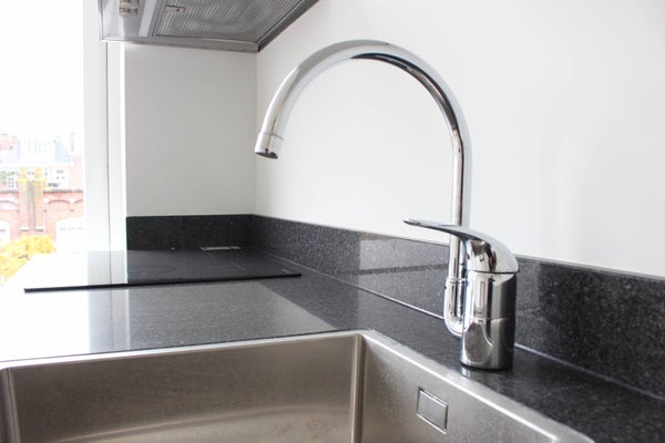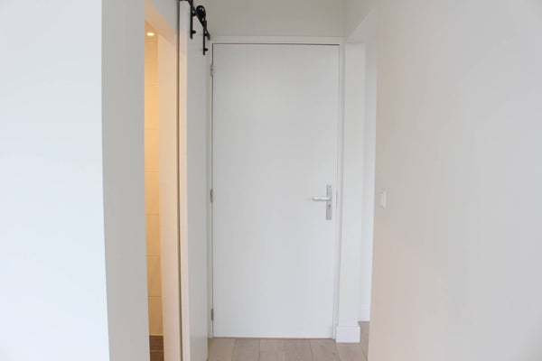 Door de open doorgang betreedt u de slaapkamer aan de voorzijde van het appartement, welke eveneens de woonkamer over een groot raam beschikt. Door de schuifdeur betreedt u de net betegelde badkamer, welke beschikt over een douche, toilet en fonteintje!