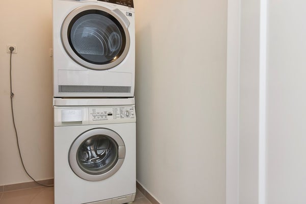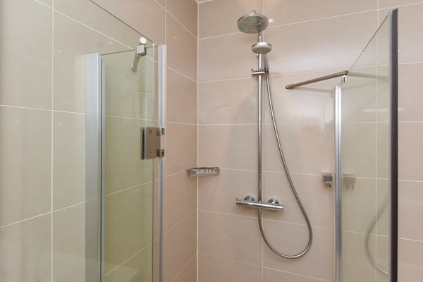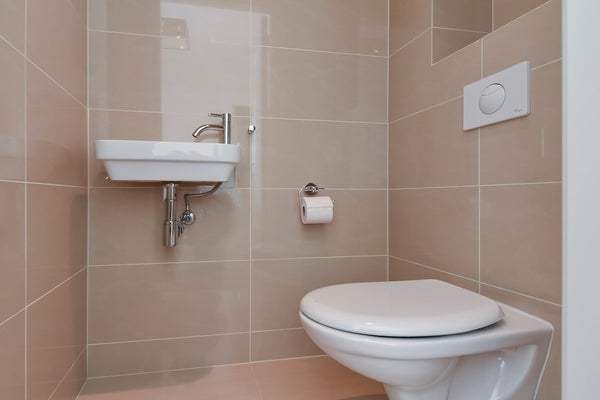 Apart toilet met fontein en een wasruimte (1.7x1.7m) waar tevens de CV ketel hangt. Wasmachine en -droger zijn inbegrepen bij de huur.