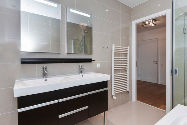 De volledig betegelde badkamer (2.78x2m) is in 2021 volledig gerenoveerd en voorzien van een ligbad, douche en dubbele wastafel.