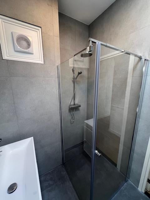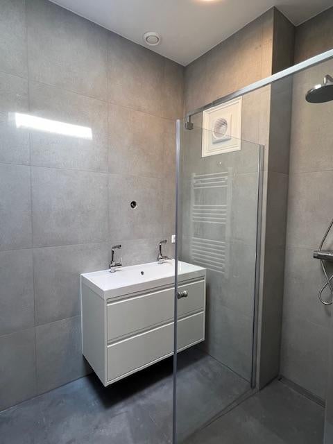 Slaapkamer (2.84 x 4.24m) met kasten aan de achterzijde. Gerenoveerde badkamer met douche, design wastafel en radiator. Apart toilet in de hal.