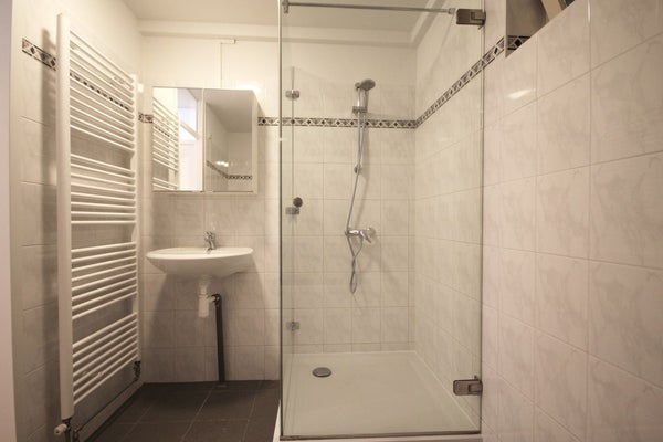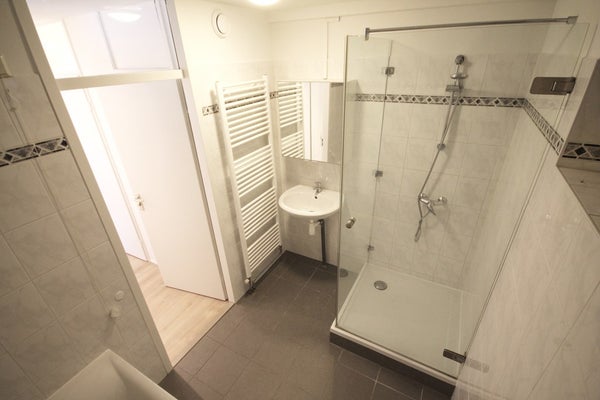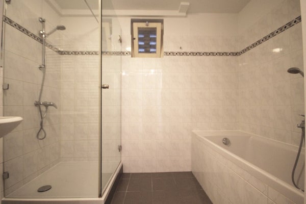 - Ruime volledige betegelde badkamer met bad en separate douchecabine