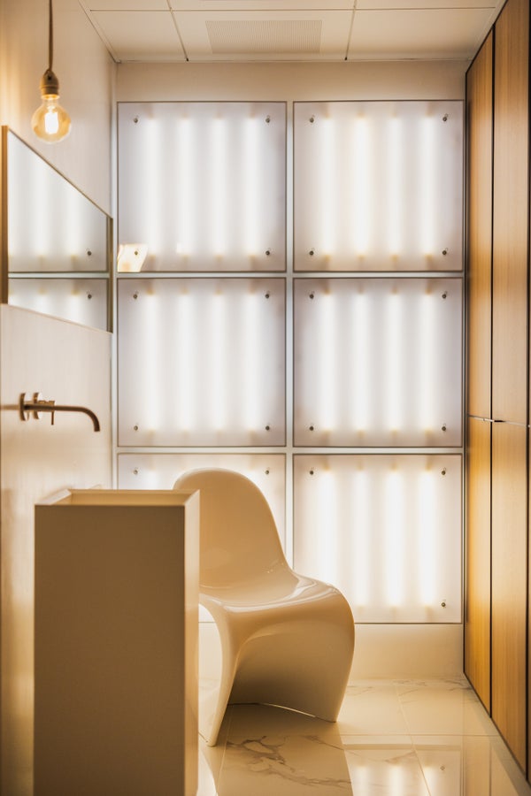 Het appartement telt drie slaapkamers: één aan de voorzijde met uitzicht op de Zeestraat en twee aan de achterzijde, bereikbaar via een afgesloten hal. Hier bevindt zich ook de riante badkamer met inloopdouche, vrijstaand bad, kastwand en luxe toilet met verschillende functies, bedienbaar via afstandsbediening. Net als het ruim opgezette dakterras van 50m2, een bijzonder kenmerk in het midden van de stad.