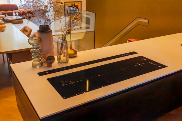 Via de entree bereikt u de eerste verdieping, waar de voordeur zich bevindt. Bij binnenkomst valt direct het prachtige lichtinval op. De woning is hoogwaardig afgewerkt, met oog voor detail en een warme, stijlvolle uitstraling. De ruime woonkamer met open keuken beschikt over kwalitatieve inbouwapparatuur, waaronder twee ovens, een ijskast, vriezer, inductiekookplaat en vaatwasser. De woonkamer geniet van veel natuurlijk licht en een mooi uitzicht over de Zeestraat.