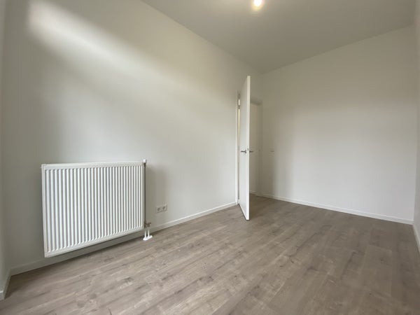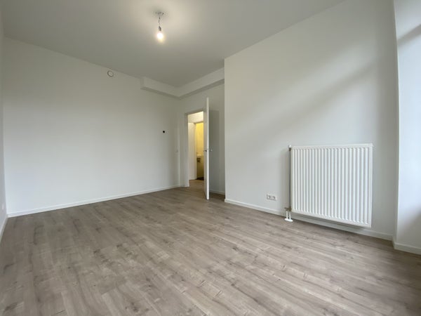 Aan de voorzijde van dit heerlijk lichte en ruime appartement ligt de 1e (slaap)kamer en de ruime woonkamer.