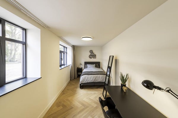 Wonen in de sfeer van de jaren ’30 met het comfort van nu. Om modern comfort met respect voor de oorspronkelijke sfeer te waarborgen is in de afwerking van de appartementen veel aandacht besteed aan details. Zo zijn bijvoorbeeld de eikenhouten vloeren in een visgraatmotief gelegd en voorzien van vloerverwarming.