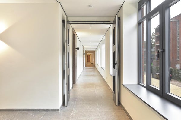 U komt binnen via een statige entree die is afgewerkt met fraai natuurstenen vloer die doorloopt in de lichte gangen naar de appartementen. De natuurstenen afwerking vindt u ook terug in de kaders rond de voordeuren. Uiteraard zijn alle appartementen met de lift te bereiken.