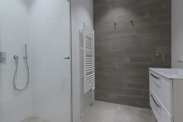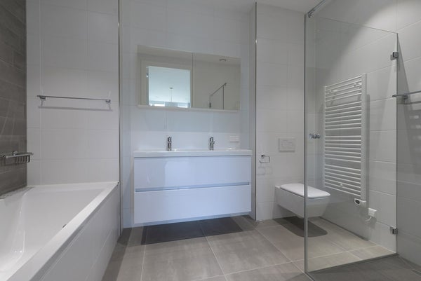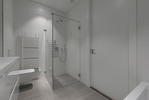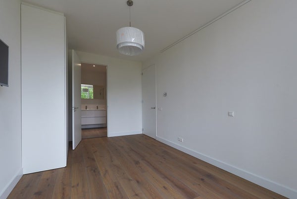 De andere twee slaapkamers hebben ook een iets kleinere garderobe en beide badkamers kunnen gebruik maken van de tweede badkamer, die een inloopdouche en een wastafel heeft. In de hal is er ook een apart toilet.