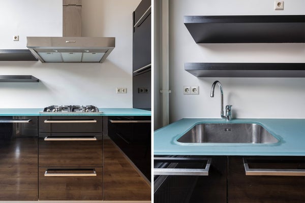 Bij binnenkomst stap je in een lichte woon- en eetruimte, met toegang tot de keuken. De keuken is volledig uitgerust met alle essentiële apparaten, waaronder een inductiekookplaat, koelkast-vriescombinatie, oven en vaatwasser.