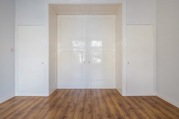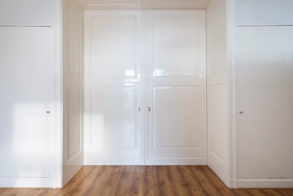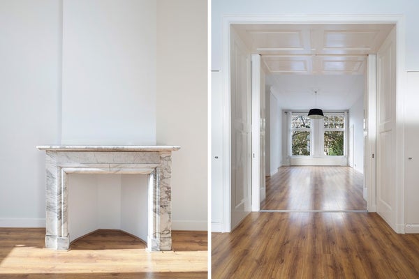 Via schuifdeuren heb je toegang tot de slaapkamer, met prachtige klassieke details.