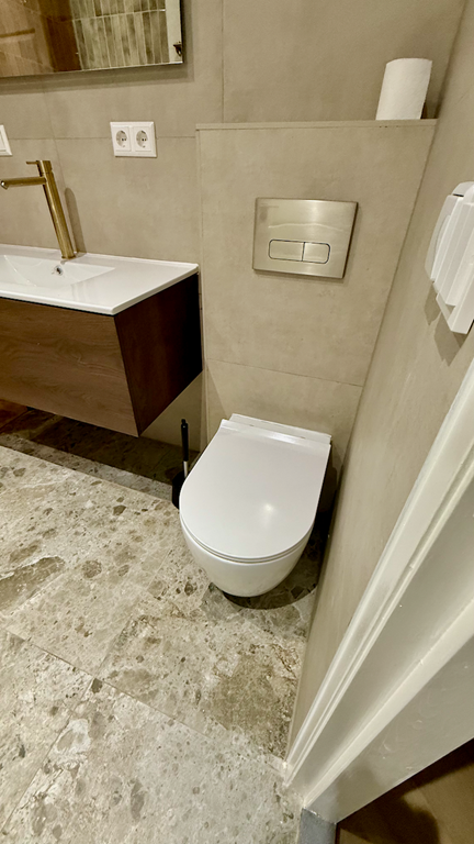Praktisch detail: het huis heeft twee moderne toiletten. Ideaal voor het ontvangen van gasten of voor twee – of drie – mensen die samenwonen. Alles is aan gedacht.